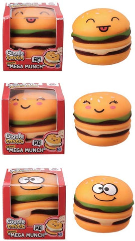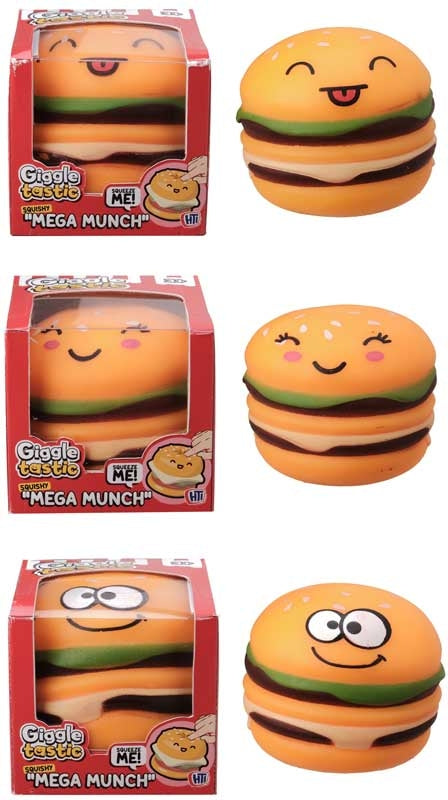 Mega Munch brings big, squishy fun with the ultimate burger imitation toys! Collect all 3 burgers, each featuring a different fun face, for a playful sensory experience. Super squishy and stretchy, these burgers are perfect for little hands to squeeze and explore. Ideal for sensory play, Mega Munch adds a delicious twist to playtime. Suitable for ages 3 years and up.