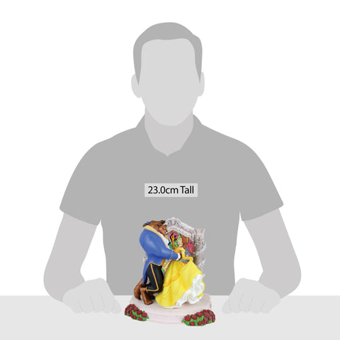 Beauty and the Beast light up figurine. The figurine is made from cast stone. Each piece is hand painted and slight colour variations are to be expected which makes each piece unique.