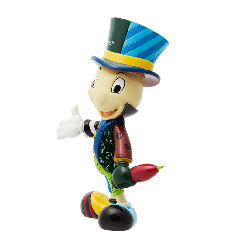 Inspired by the iconic sidekick in Disney's Pinocchio, Romero Britto has added his trademark use of colour and pattern to the character Jiminy Cricket on this striking, hand-painted figurine.