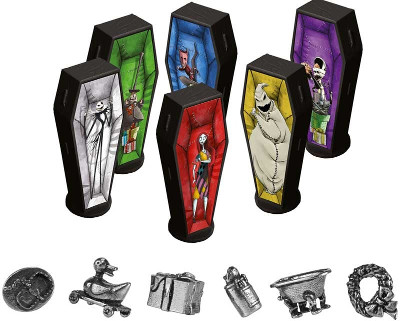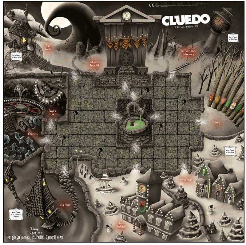 It’s the night before Christmas, and someone has kidnapped the big red lobster man! Can you solve the mystery in time to save Christmas? Or will the Pumpkin King take over the holiday forever? It’s up to you to figure out who kidnapped Sandy Claws, where he was hidden and what item was used. Join Jack, Sally, Dr. Finkelstein, Oogie Boogie, the Mayor and Lock, Shock & Barrel as you travel around the board, explore nine Halloween Town locations and eliminate evidence, piece by piece, from your investigation. This special edition of Cluedo features six custom item tokens: Bear Trap, Zombie Duck, Present, Frog’s Breath, Bathtub and Christmas Wreath, and includes a deck of Personality cards, Rumour cards and Intrigue cards to mix up gameplay with festive surprises. Will all your Christmas wishes come true, or will you get a Halloween nightmare instead? It’s time to find out, so choose your favourite character, roll the dice and race to save the day!