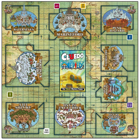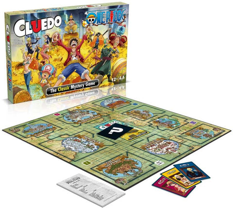 Join an adventure with the Straw Hat Crew! The Straw Hat Pirates and their Captain Luffy set out to travel the oceans to faraway islands in search of treasure! With each clue they discover along the way, they're one step closer to glory! Choose your Crew Member and see which island holds the coveted treasure. In One Piece Cluedo, it’s up to you to determine who has discovered the treasure, what it is, and where it is hidden. Was it Nami, with the Binoculars, at Marineford? Or Chopper, with the Meat, on Wholecake Island? Move around the board and pick up Adventure cards to gain the advantage over your opponents, and use your character's unique Equipment card to outsmart your foes. Will you use Devil's Fruit to cause chaos and confusion, or will the impostor pirates force you to reveal your cards? Watch out for the Villain cards, because when all 8 are revealed, the game is over! Perfect for One Piece fans and aspiring detectives looking for a new challenge, this fresh new edition of Cluedo is sure to please players young and old.